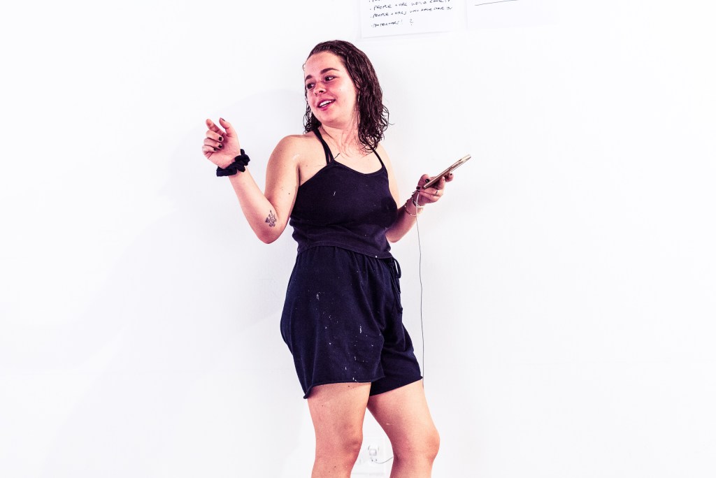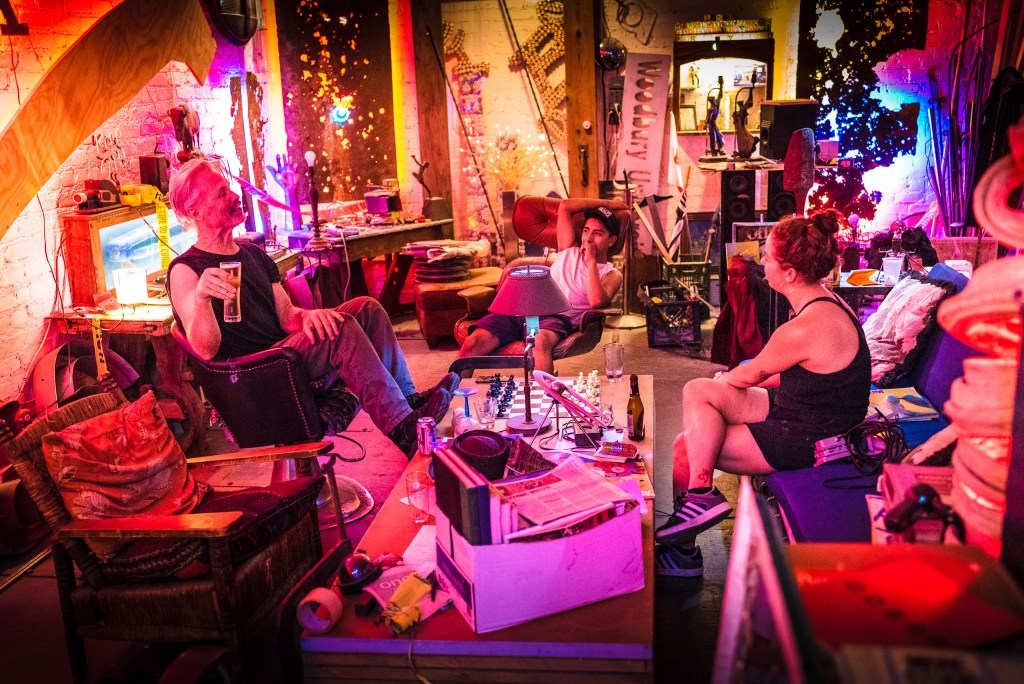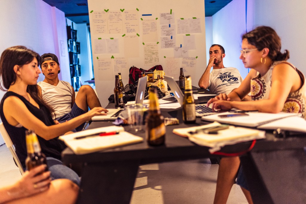 Free School of Architecture (FSA) participants work at Woodbury University Hollywood (WUHO) on Hollywood Blvd in preparation for their summer concluding exhibition on Friday.