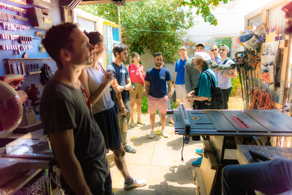 Learners from the Free School of Architecture (FSA 2018 Los Angeles) visit the Los Angeles Eco-Village and have a conversation with Executive Director Lois Arkin. And lunch at Pho Legend. And Katya & Jacob paint WUHO.